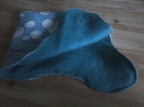 Der Obere Baumwollstoff ist in Bartiktechnik grün gefärbt und wirkt wie Leder. Hier besteht das Innere auseinem dunkelblauen Nickistoff. Dieser ist nicht nur schön kuschelig, sonder hält auch noch schön warm.